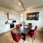 Die stilvolle und hochwertig eingerichtete Wohnung mit hohen Räumen, Stuck-Elementen, Kronleuchtern etc. ist frisch renoviert und bietet Ihnen u.a. ein großes Wohnzimmer mit Bar, TV und einem bequemen Schlafsofa sowie 3 geräumige Schlafzimmer mit großen Boxspring-Betten, Kleiderschränken, Schreibtisch und von einigen Zimmern direkten Blick auf Schloss Wilhelmshöhe und das Kasseler Wahrzeichen, den Herkules. Außerdem besticht das exklusive Apartment mit einer großen und modernen, voll ausgestatteten Küche (u.a. mit Geschirrspüler, Backofen, Mikrowelle, Ceranfeld, Dunstabzugshaube und Kühlschrank mit Gefrierfach) mit großem Esstisch und hat ein modernes Bad mit Dusche und WC und ein separates Gäste-WC. Die ruhige Wohnung verfügt zudem über einen großen Balkon mit Herkulesblick sowie eine Waschmaschine und bietet unseren Gästen auf dem Grundstück kostenfreie Parkplätze.