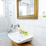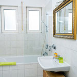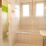 Vom modernen Bad mit Duschwanne gelangt man zum separat untergebrachten WC.
