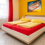 In Schlafzimmer 1 befinden sich ein großes Doppelbett (1,80m x 2,00m), ein Etagenbett sowie ein großer Kleiderschrank. Schlafzimmer 2 verfügt ebenfalls über
