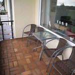 Der Süd-Balkon besticht durch seinen Blick auf die weitläufige Fuldaaue sowie auf den Herkules (Unesco-Weltkulturerbe). Mit Tisch und Stühlen lädt er zum